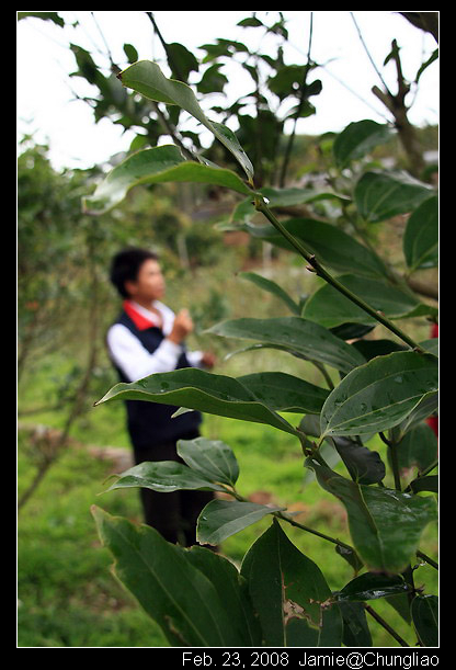 站在肉桂林中,聽著阿忠哥的解說,飄雨的空氣裡有淡淡的肉桂香......甜甜的哩!